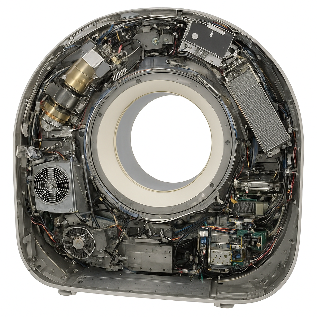 گانتری مهمترین قسمت دستگاه است و شبیه یک حلقه بزرگ بهنظر میرسد. داخل آن این اجزا قرار دارند: