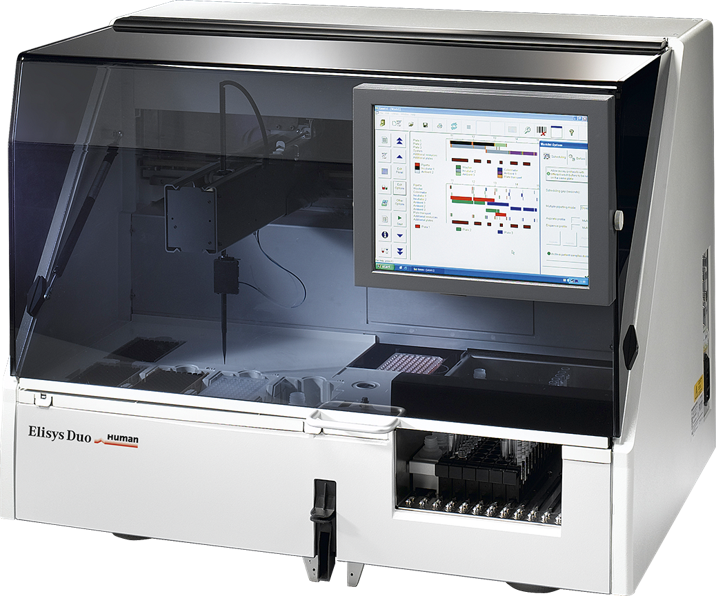 در ابتدا بخش سیستم حمل و جابجایی نمونه وجود دارد که معمولاً شامل بازوی مکانیکی با پیپت اتوماتیک است. این بخش حجم مشخصی از نمونه را از لوله نمونه برمیدارد و آن را در چاهکهای مخصوص روی میکروپلیت قرار میدهد.