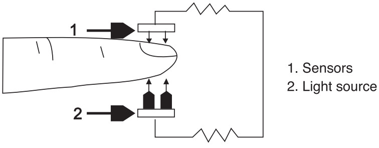 LEDهای سنسور، نور قرمز و مادونقرمز را از بافت عبور میدهند.